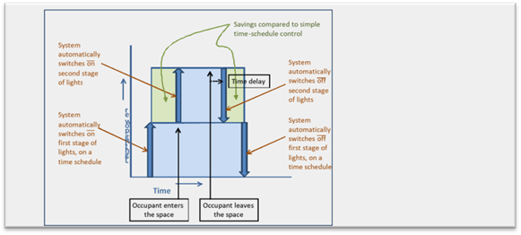 One important function is the capability to automatically turn lights either off or down within 20 minutes of an area being vacated.